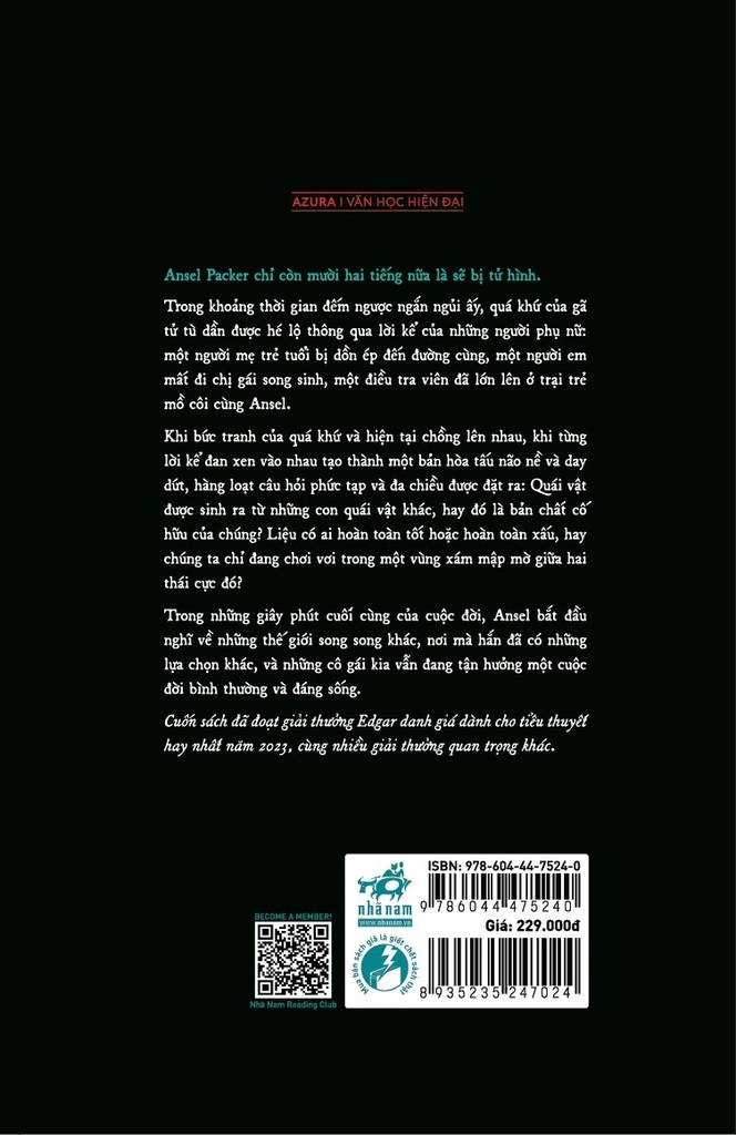Cuốn sách đã đoạt giải thưởng Edgar danh giá dành cho tiểu thuyết hay nhất năm 2023, cùng nhiều giải thưởng quan trọng khác.