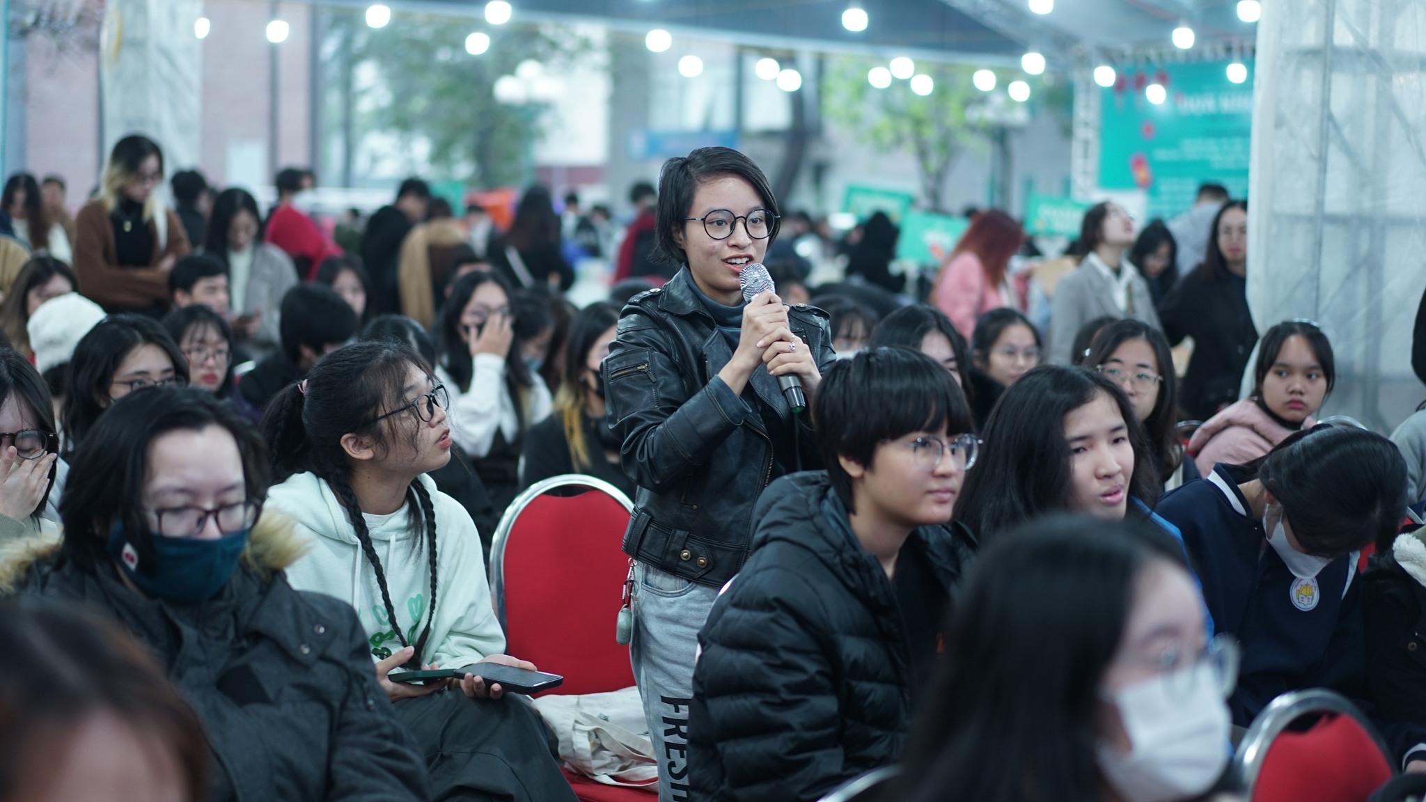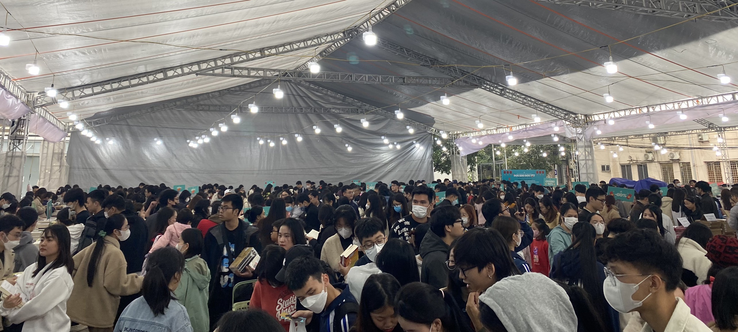 Dù thời tiết không ủng hộ, sáng thứ bảy trời mưa gió lạnh giá, vẫn có hơn 100 độc giả đã đến từ sớm để tham dự, lấp kín ghế ngồi, nhiều bạn phải đứng do không còn ghế.