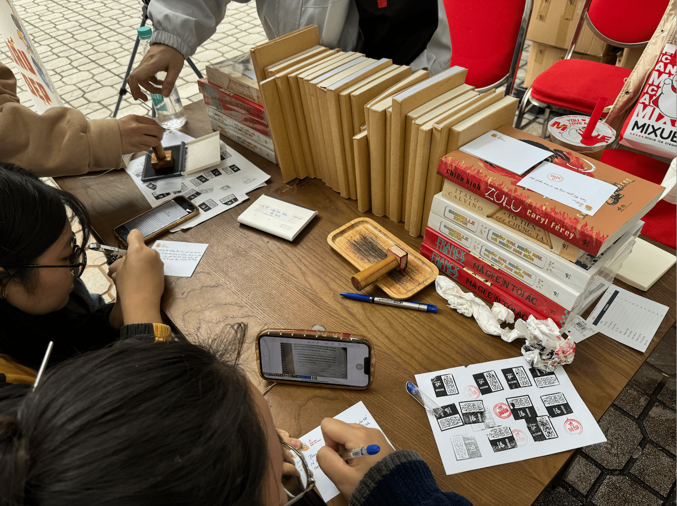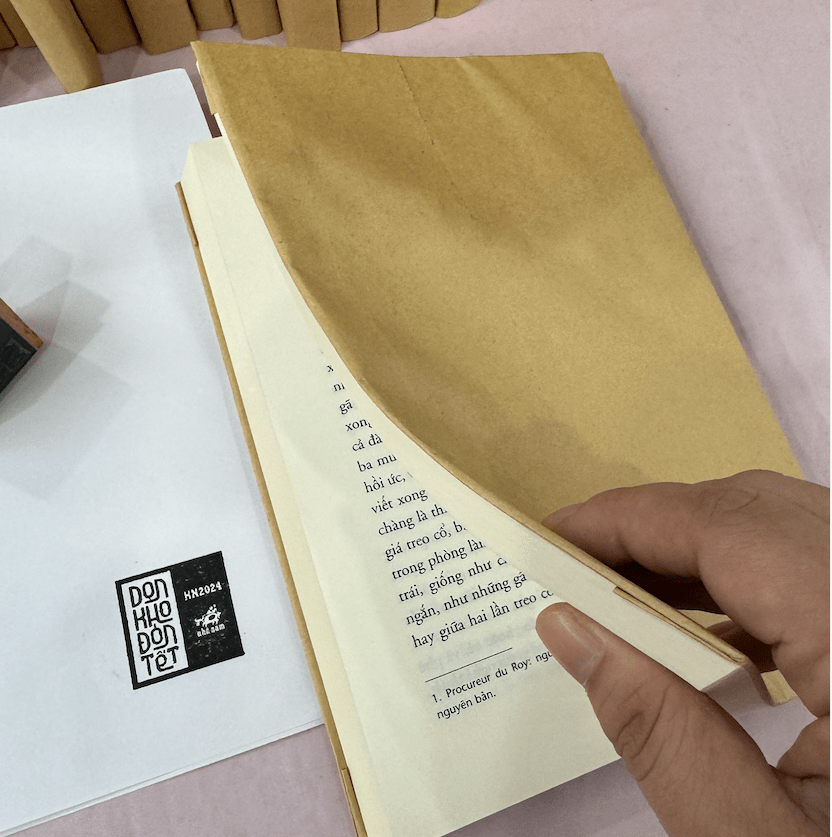 Tại Dọn kho đón Tết năm nay, các bạn cũng có cơ hội được tự tay check in với con dấu mộc độc quyền. Đây là con dấu được thiết kế riêng cho dọn kho năm nay. Các bạn độc giả có thể ghé qua quầy dấu mộc để tự tay lưu lại kỷ niệm với Dọn kho Nhã Nam 2024 lên cuốn sách mình vừa mua.