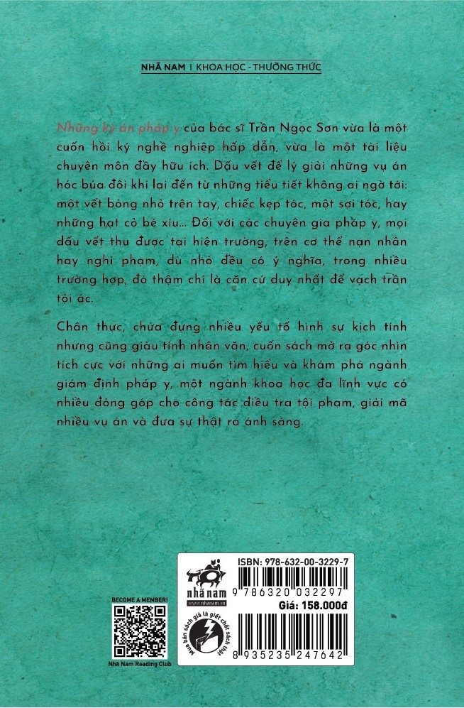 Những kỳ án pháp y của bác sĩ Trần Ngọc Sơn vừa là một cuốn hồi ký nghề nghiệp hấp dẫn, vừa là một tài liệu chuyên môn đầy hữu ích. Dấu vết để lý giải những vụ án hóc búa đôi khi lại đến từ những tiểu tiết không ai ngờ tới: một vết bỏng nhỏ trên tay, chiếc kẹp tóc, một sợi tóc, hay những hạt cỏ bé xíu… Đối với các chuyên gia pháp y, mọi dấu vết thu được tại hiện trường, trên cơ thể nạn nhân hay nghi phạm, dù nhỏ đều có ý nghĩa, trong nhiều trường hợp, đó thậm chí là căn cứ duy nhất để vạch trần tội ác.