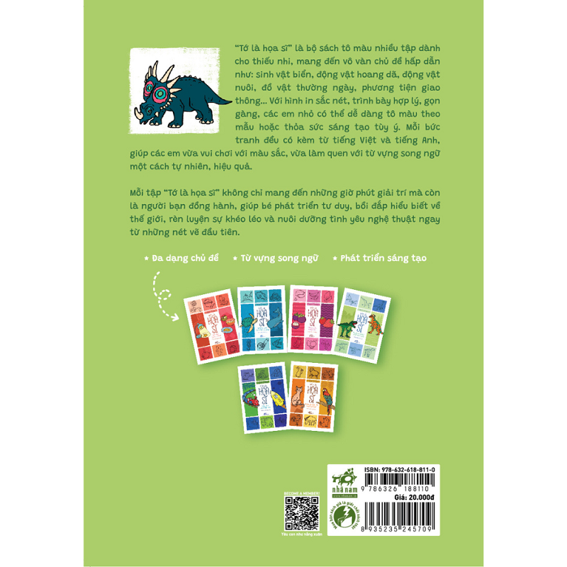 "Tớ là họa sĩ" là bộ sách tô màu nhiều tập dành cho thiếu nhi, mang đến vô vàn chủ đề hấp dẫn như: sinh vật biển, động vật hoang dã, đồ vật nuôi, đồ vật thường ngày, phương tiện giao thông…Với hình in sắc nét, trình bày hợp lý,gọn gàng, các em nhỏ có thể dễ dàng tô màu theo mẫu hoặc thỏa sức sáng tạo tùy ý. Mỗi bức tranh đều có kèm từ Tiếng Việt và tiếng Anh, giúp các em vừa vui chơi với màu sắc, vừa làm quen với từ vựng song ngữ một cách tự nhiên, hiệu quả.